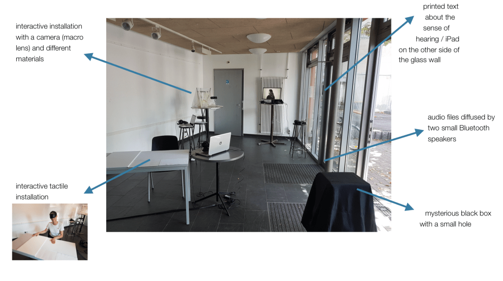 The narrative connotation of transmedia storytelling, as well as its rooting in the industry of entertainment, keep it quite distant from the world of contemporary art and music — which I belong to. Yet, some core ideas of transmedia can lead to interesting reflections on structure and semantics. One of such ideas is the complementarity and mutual enhancement of the different media, as each medium should bring its own unique contribution to the structuring of the whole work. I adopted this approach in Sensibilities through different strategies, which include the dissemination of clues, the creation of transversal relationships between media, and the deliberate omission of elements: for example, the sound of steps is absent in the video Can You Hear Me?, while it is heard in the real space of the installation.